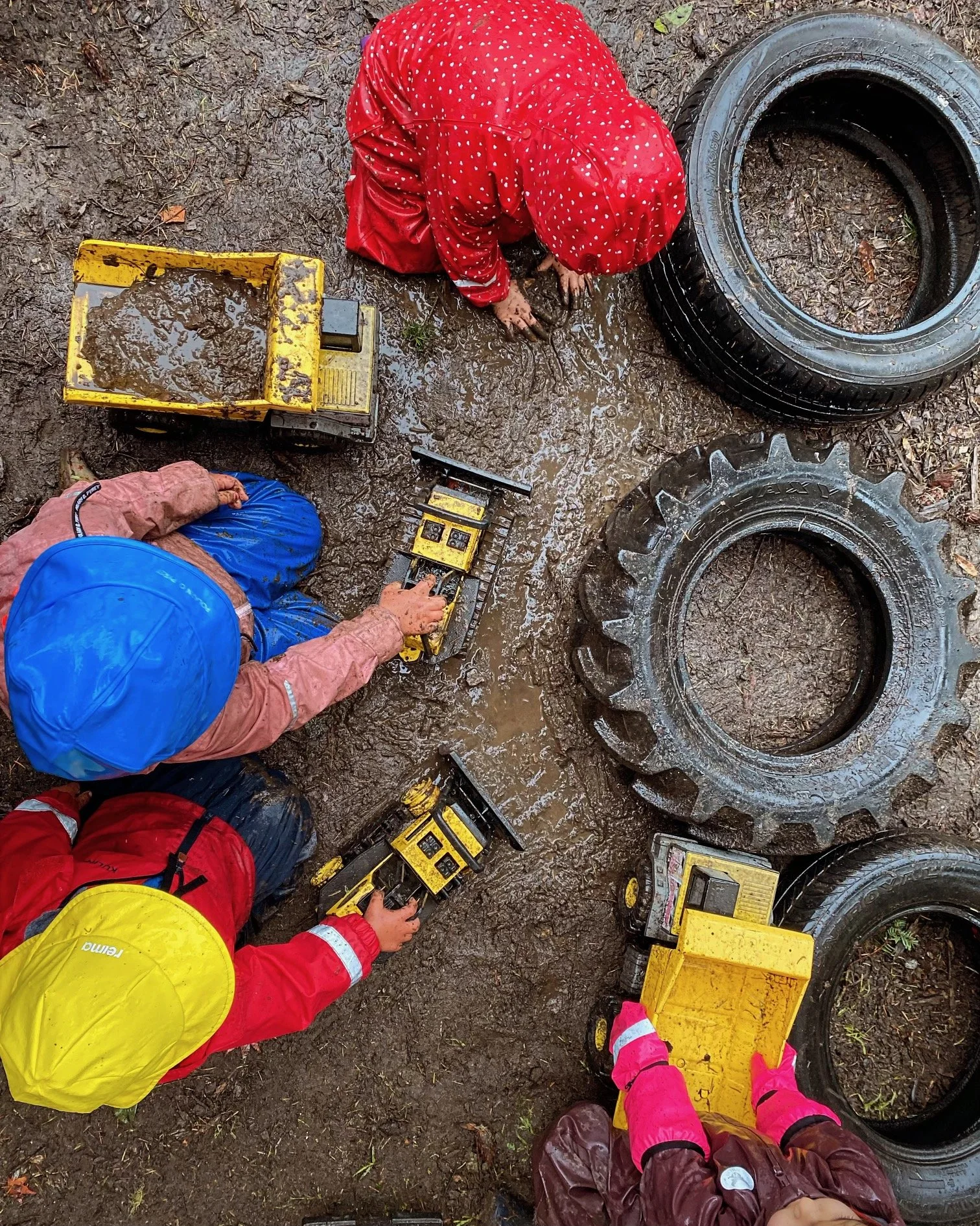 We spend much of our day outdoors, although we have a fully appointed indoor space. Our hole is that your child will be outside much of the day, nearly every day, playing, exploring, and learning with their classmates. This environment offers the gift of inquiry, practical self-regulation, and the chance to feel one's true capabilities. Not to mention the muddiest of clothes and the rosiest of cheeks! The combination of being primarily outdoors with indoor space available has proven beneficial. Our indoor time allows for rest, a quieter cocooning, a warm dry cozy nest after a long lovely time outside—a balanced recharge. Daily experiences in nature allow young children to understand their part in the natural world. These early experiences in and with nature can help instill a deep connection and sense of stewardship towards ourselves, our community, and our planet. Daily engagement with the outdoors provides vast physical and mental health benefits for young children that last throughout their lifetime. Children whose connection with the natural world is fostered early and often are shown to have improved academic and cognitive strength, the capability to be flexible, adaptive, and a solid fortitude. Qualities that are of great benefit in this ever changing world they will enter.